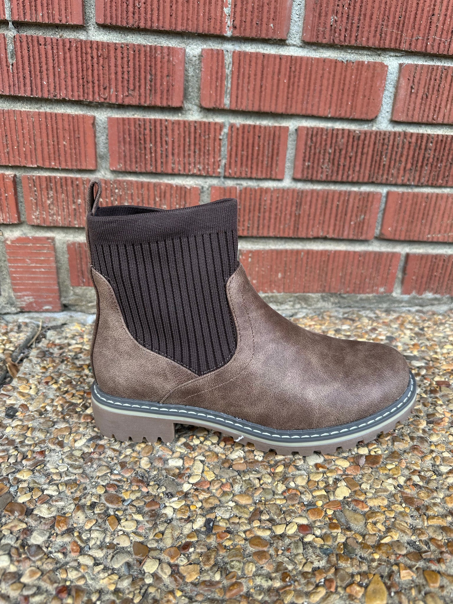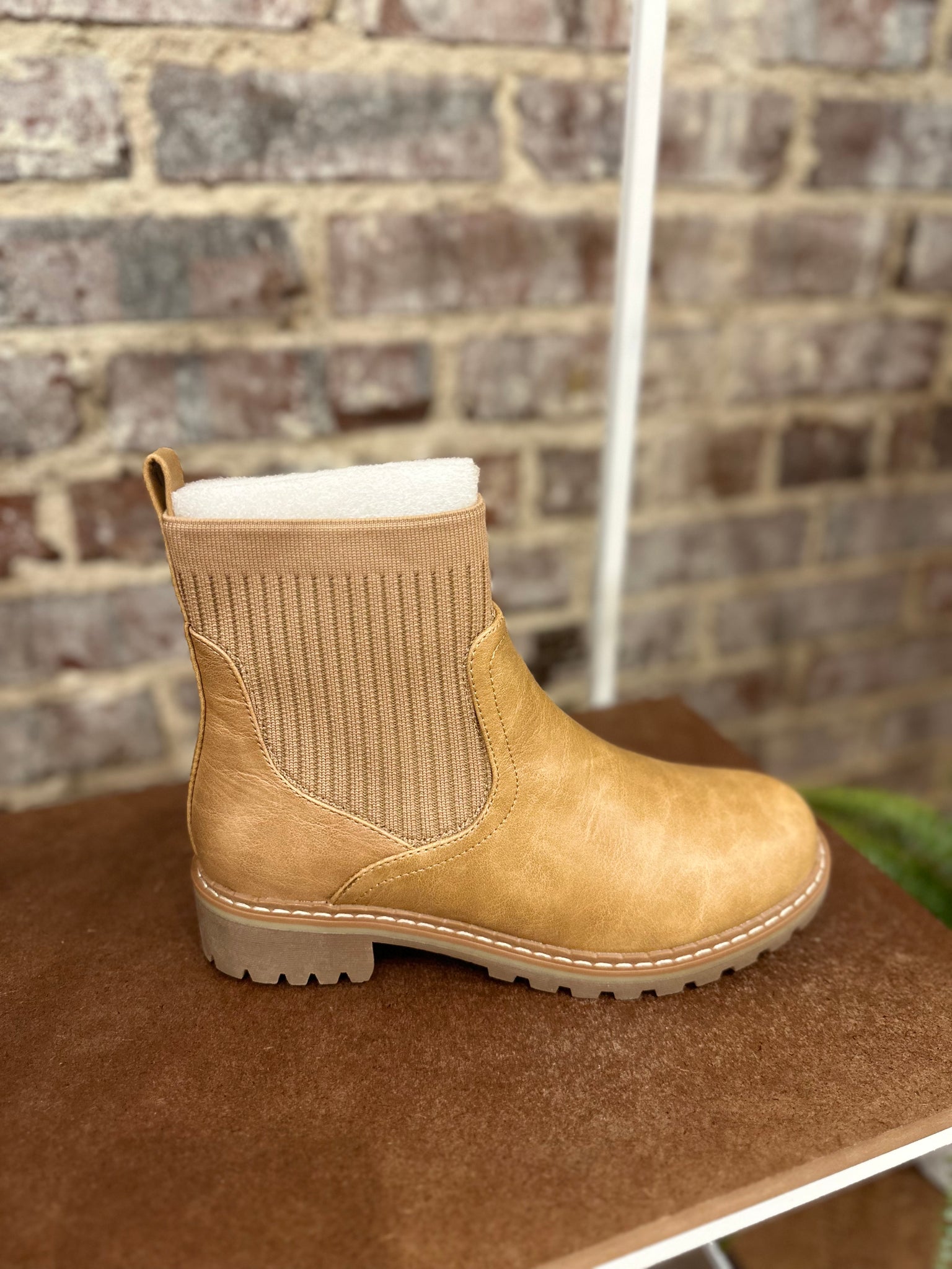 Ankle boots with side fabric available in Black, Caramel and Tan.